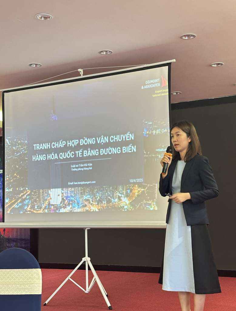 Ngày 10/4/2025, các luật sư của Dzungsrt & Associates là ông Nguyễn Mạnh Dũng – Giám đốc và bà Trần Hà Hân – Trưởng phòng Hàng hải đã vinh dự tham gia với vai trò Diễn giả tại Hội thảo chia sẻ kinh nghiệm và kỹ năng hành nghề luật sư chuyên sâu trong lĩnh vực Thương mại Quốc tế khu vực phía Nam, do Cục Bổ trợ tư pháp – Bộ Tư pháp tổ chức.